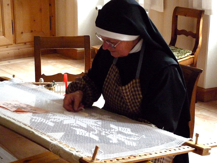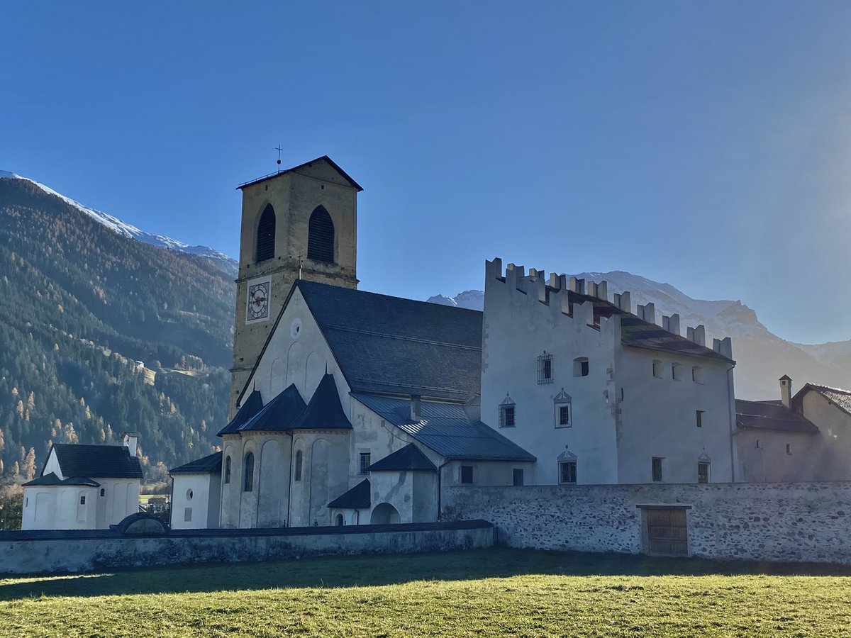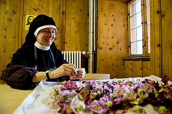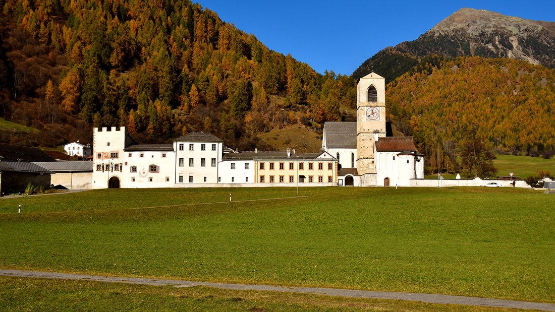 Das Leben im Kloster ist ein Leben in Gemeinschaft unter „Regel und Abt“ in einem ausgewogenen Wechsel von Gebet, Arbeit und geistlicher Lesung. Seit seiner Gründung im 8. Jahrhundert war das Kloster St. Johann in Müstair stets bewohnt. Der benediktinische Geist ist klar spürbar. Der Hl. Benedikt legte mit seiner Regel den Grundstein für eine Ordensgemeinschaft, in der sich die Brüder und Schwestern in Respekt und Demut begegnen, sich gegenseitig inspirieren und stützen, für das Wohl der Gemeinschaft sorgen und im Miteinander wie auch auf individuellem Weg Gott suchen und ihm entgegen gehen. Klar strukturierter Alltag Zwischen der Vigil, dem Morgenlob, um 5.30 Uhr und der Komplet, dem Nachtgebet, um 19.30 Uhr liegen 14 Stunden klar strukturierter Klosteralltag: Beten, Psalmen und Hymnen zum Lob Gottes singen, Arbeiten, Meditieren, Lesen, Essen, Schweigen: Tag für Tag, Jahr für Jahr, Jahrzehnte, Jahrhunderte lang. Der Tagesablauf der Benediktinerinnen von Müstair ist heute im Grunde derselbe wie vor 1500 Jahren, als der Hl. Benedikt seine Regel aufschrieb. Im Zentrum steht der Glaube, die Gottsuche und –anbetung. Dabei hilft der geregelte Alltagsablauf, denn er bringt Ruhe in den Tag. Wer aber glaubt, dass die Zeit im Kloster still steht und das moderne Leben vor den Klostermauern Halt macht, der hat sich geirrt. Computer und E-Mails haben Einzug gefunden in die über 1200 Jahre alten Mauern. Termine und Sitzungen, Besprechungen und weltliche Aufgaben gehören ebenso zum Alltag der Nonnen wie ihr Stundengebet.Auf den ersten Blick scheint die enge Vernetzung des Klosters mit nichtreligiösen Institutionen den geruhsamen Tagesrhythmus der Klosterfrauen zu gefährden. Aber die Spiritualität Benedikts ist nicht einfach nur eine abgehobene Geistesübung – nein, sie ist eng mit dem klösterlichen Alltag verbunden und findet somit auch in unserer heutigen multimedialen, globalen, beschleunigten Welt ihren Platz.