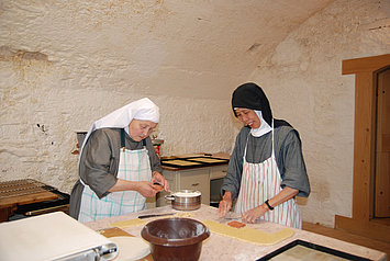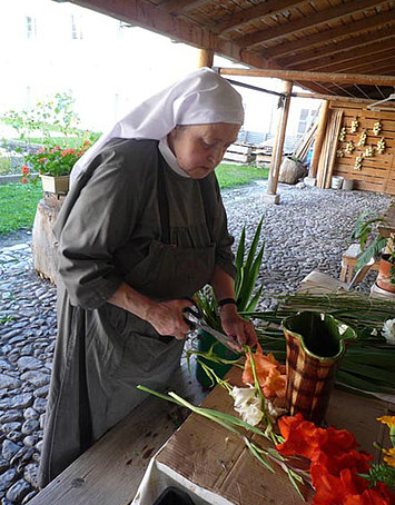 Das ganze Leben unserer Gemeinschaft, Gebet, Lesung, Arbeit, soll ein Leben in Gott und ein Dienst an IHM sein. Die Arbeiten unserer Schwestern sind vielfältig. Neben den Hausarbeiten gibt es im Garten, im Büro, in Kirche und Sakristei zu tun. Mit Hilfe unserer Angestellten führen wir ein Museum, einen Klosterladen und ein kleines Gästehaus.
